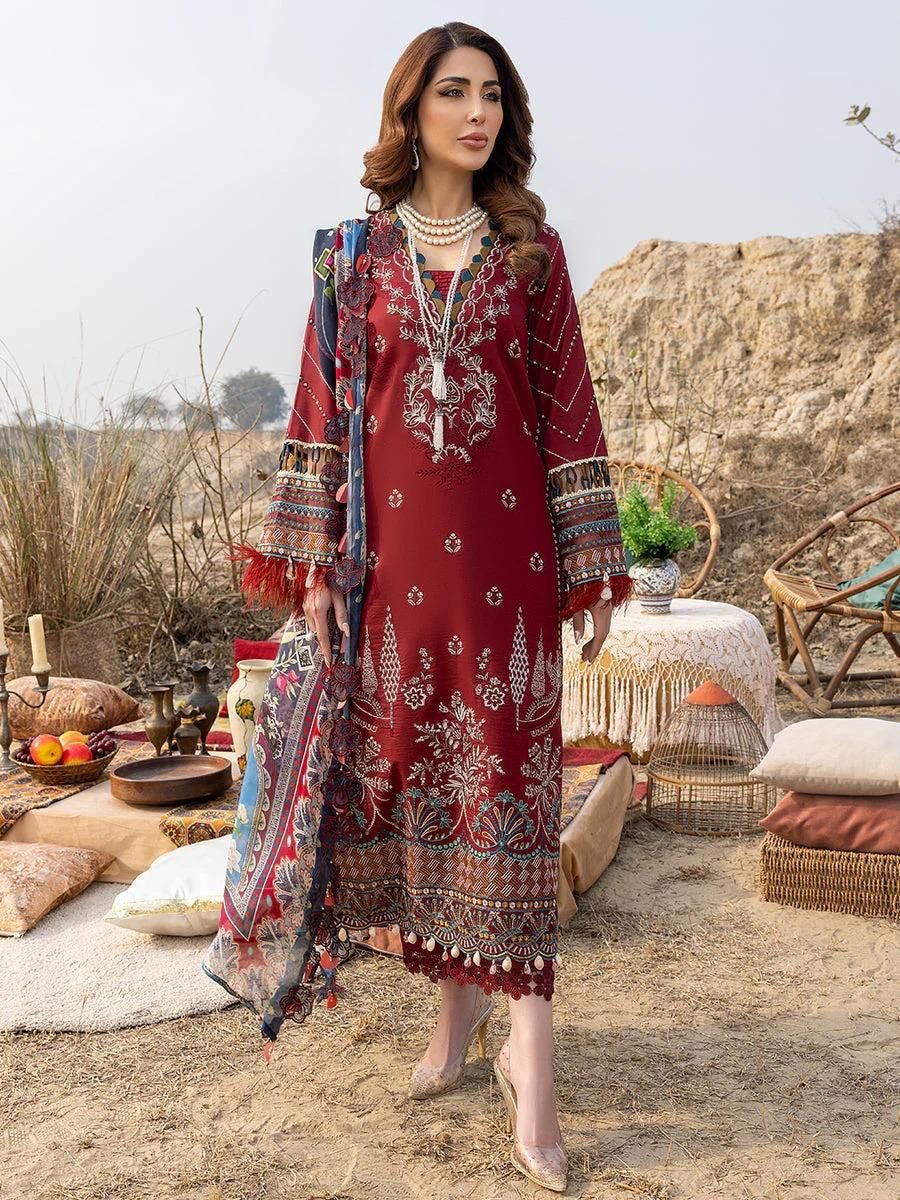Maroon Aura – Embroidery 3 Piece Dhanak
